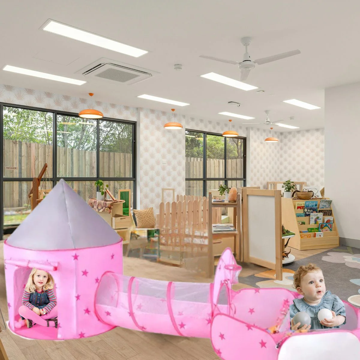 Cette aire de jeux intérieur est un univers complet d’exploration. Votre enfant peut ramper dans le tunnel de 112 cm, se cacher dans la maison de jeu de 84 cm de côté, ou plonger dans la piscine à balles de 120 cm.