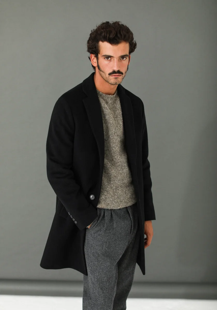 Manteau confectionné dans un magnifique tissu italien en laine & cachemire au finissage brossé. Issu d’une filature italienne particulièrement réputée avec laquelle nous travaillons depuis plusieurs saisons, ce tissu présente un finissage particulier, très lumineux, qui rajoute une note d’élégance à ce grand classique du vestiaire masculin.