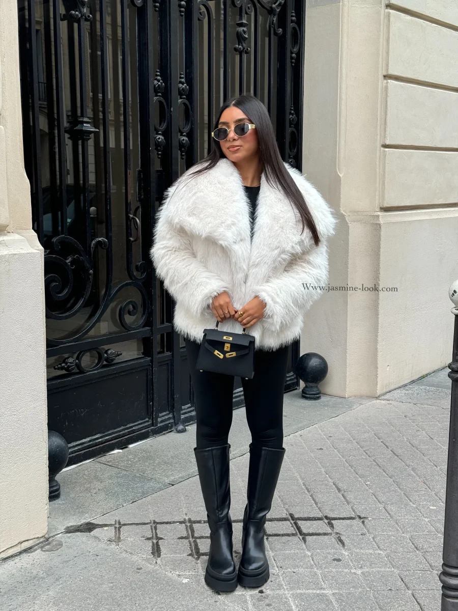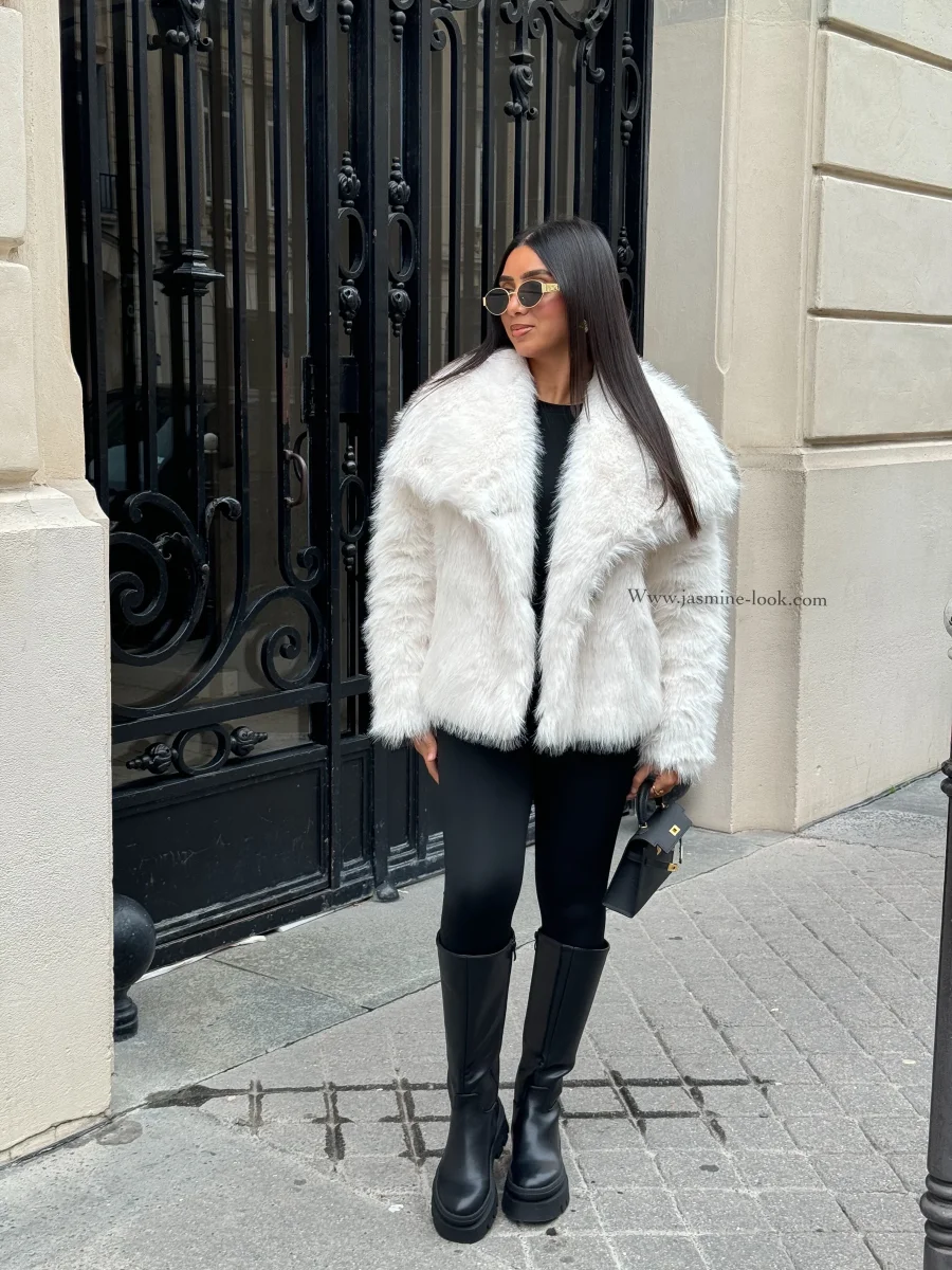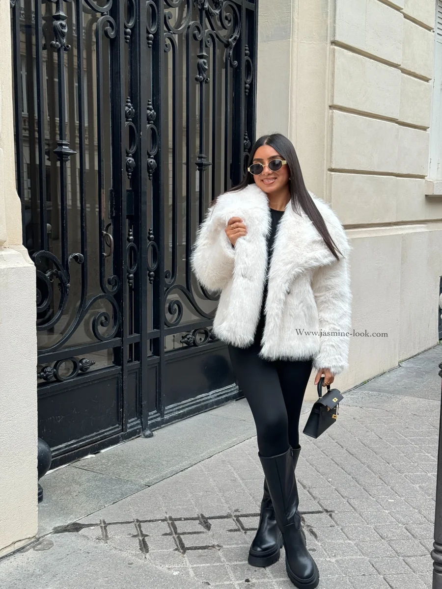 ⚜️Manteau fourrure vegan douce avec col à rabat