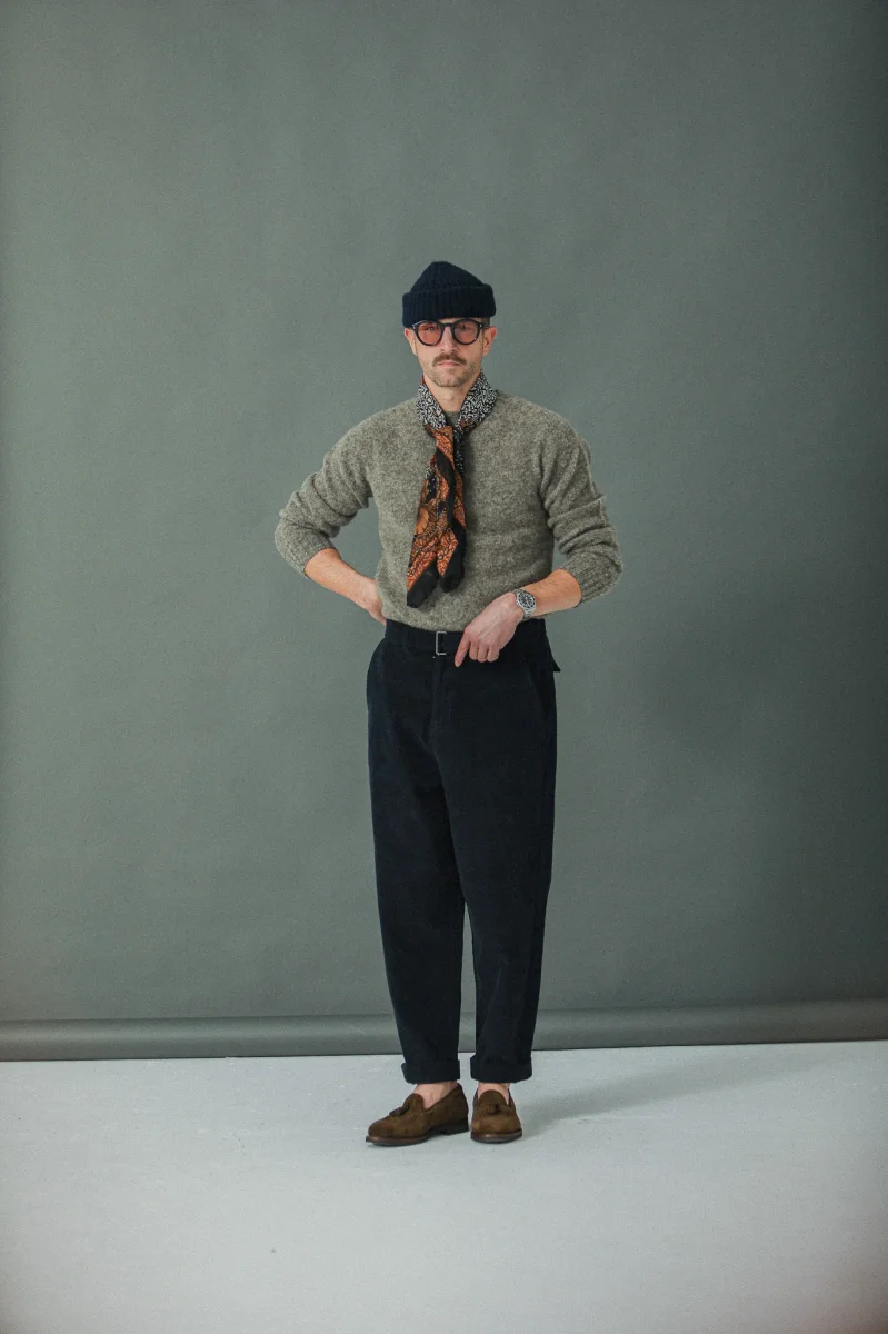 Nouveauté. Pantalon confortable de type « Chino » confectionné dans un velours navy épais et robuste « garment dye ». Cette coupe inspirée des coupes classiques du vestiaire masculin allie élégance et confort, quel que soit le contexte. Une taille haute, une jambe confortable et un bas légèrement resseré en font une pièce indispensable pour construire vos silhouettes contemporaines, […]