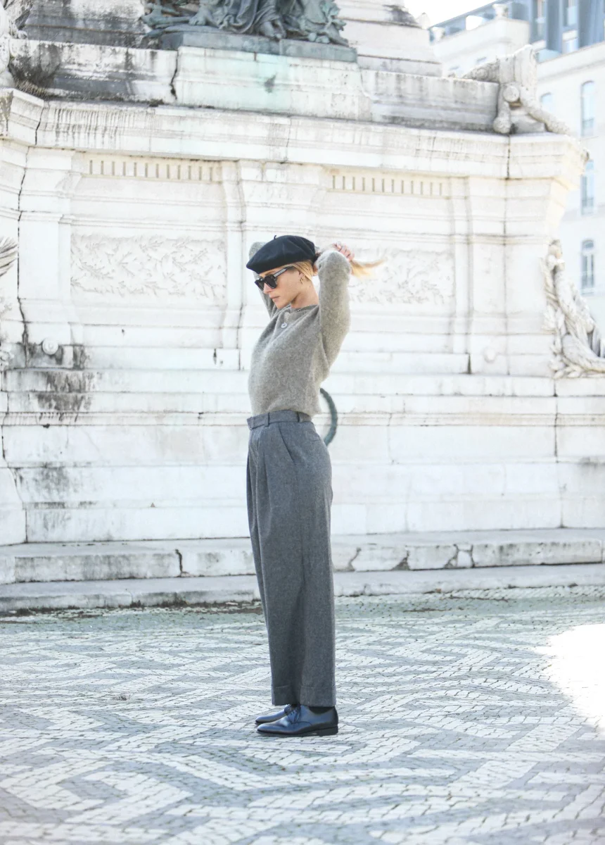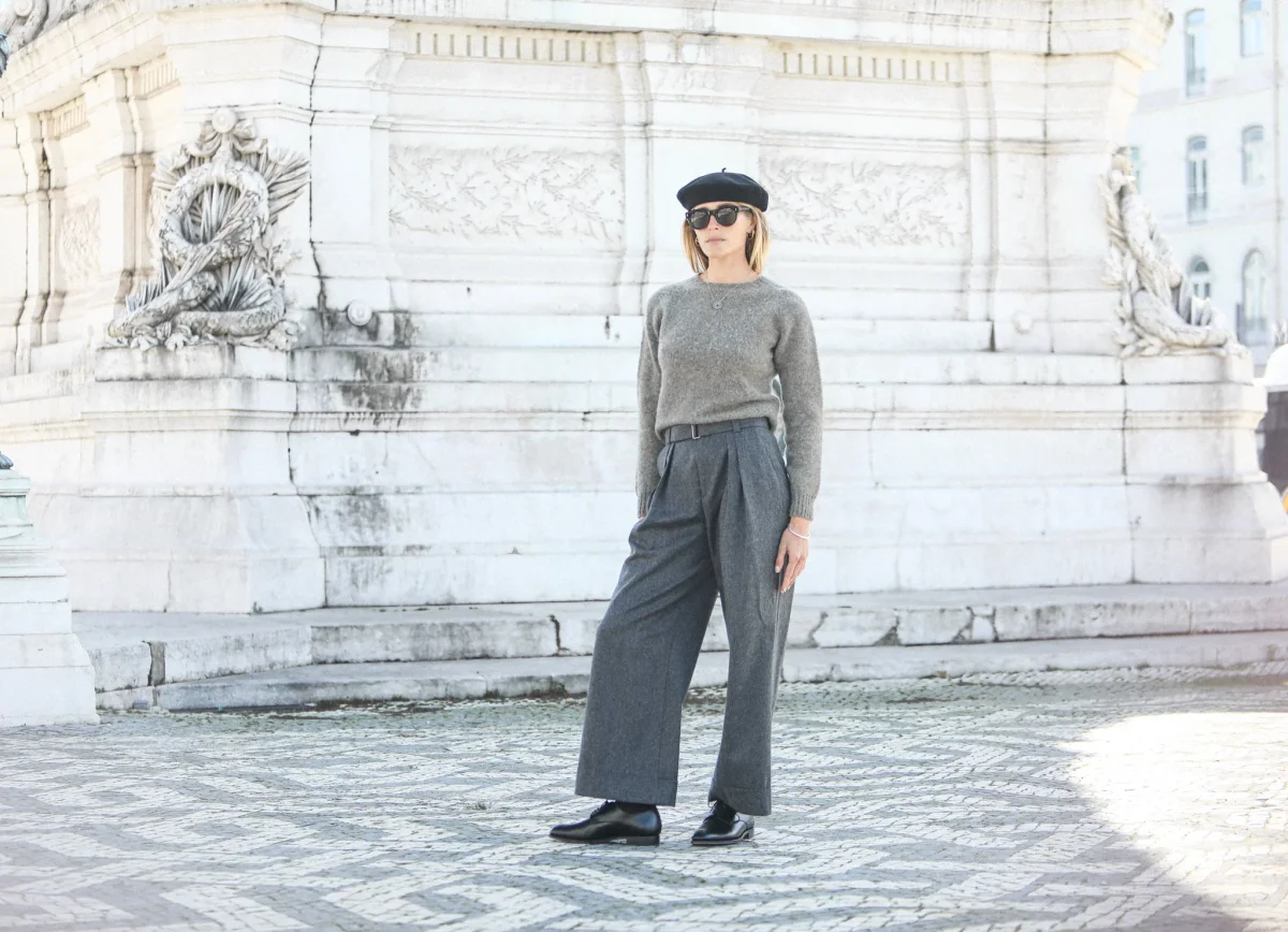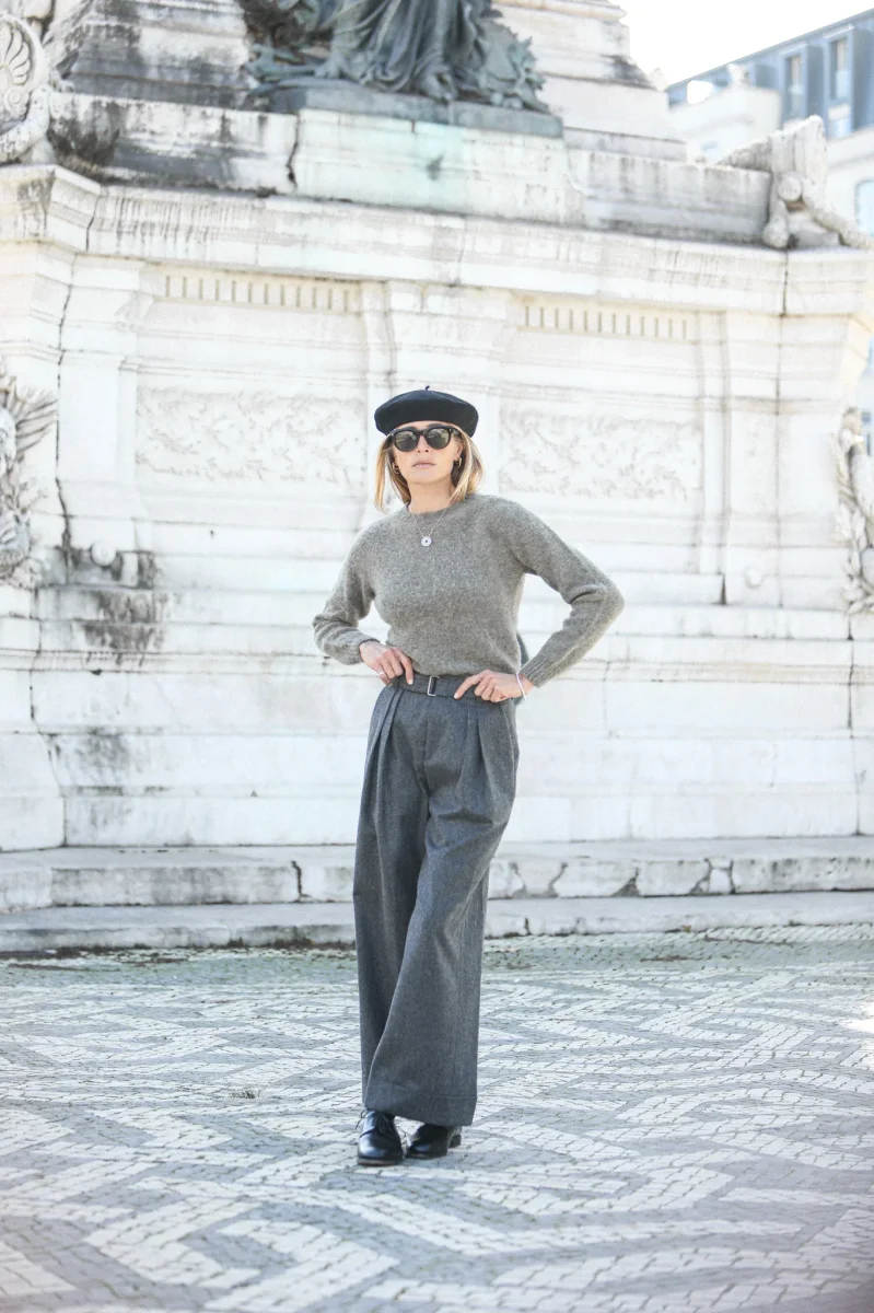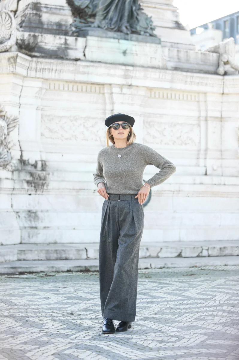 Pantalon Flanelle Grise Double Pince – Wide Leg