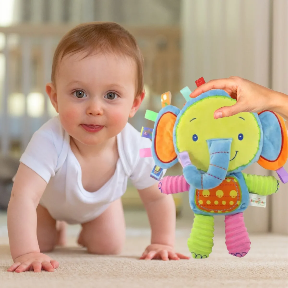 Découvrez notre peluche bebe éléphant, le compagnon idéal pour stimuler et apaiser votre petit dès ses premiers jours. Cette peluche interactive allie douceur, sons apaisants et textures variées pour offrir une expérience sensorielle complète à votre bébé.