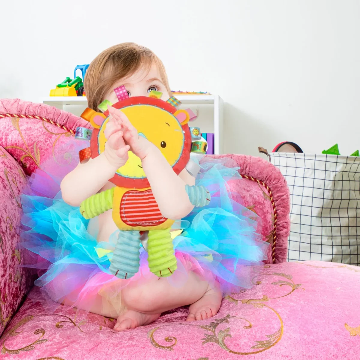 Les hochets intégrés et la clochette stimulent son ouïe et sa vue, tandis que le tissus doux éveille son sens du toucher. En quelques instants, votre tout-petit est plongé dans un monde de découvertes sensorielles.