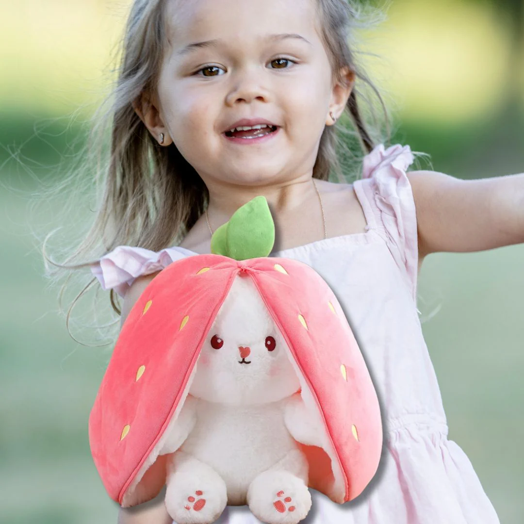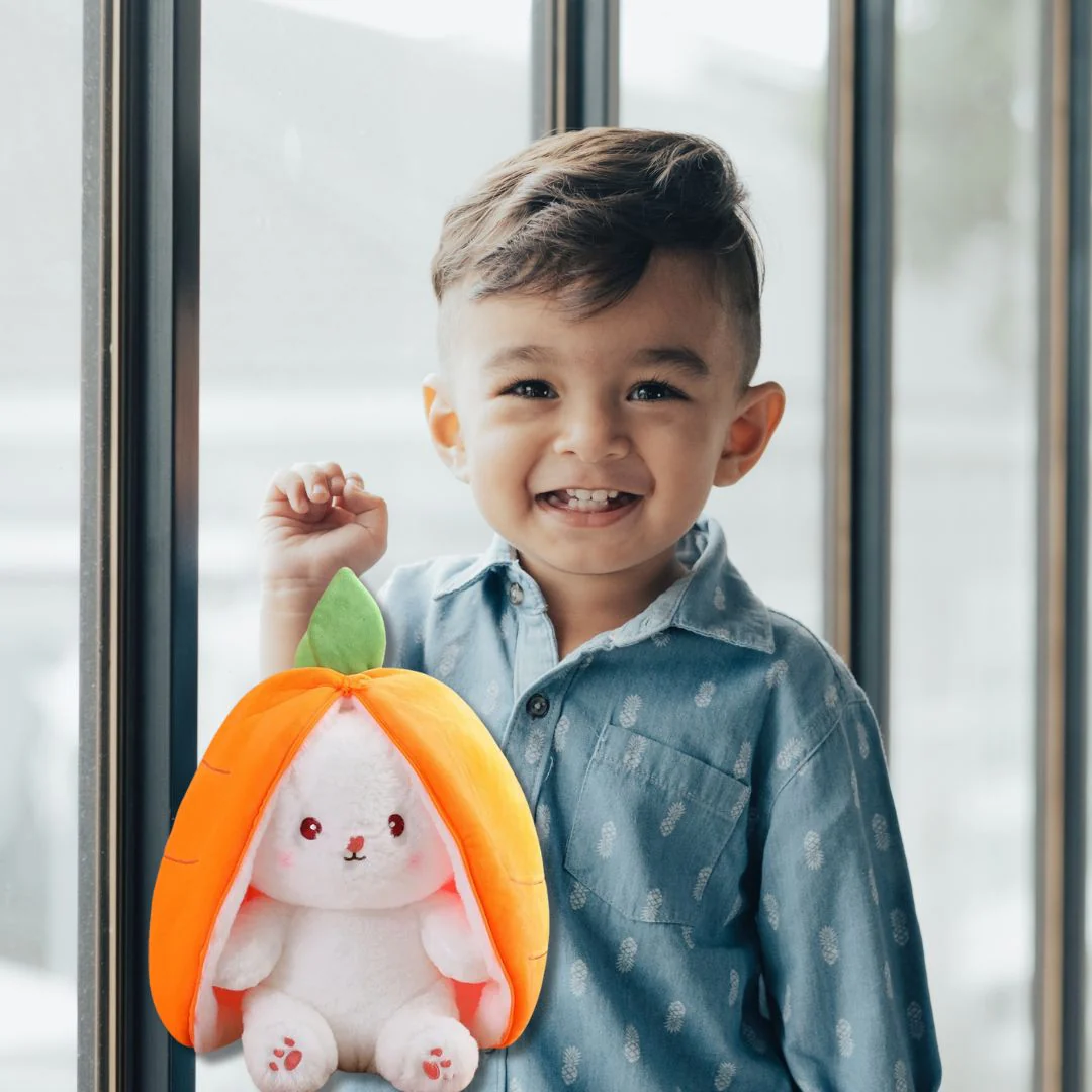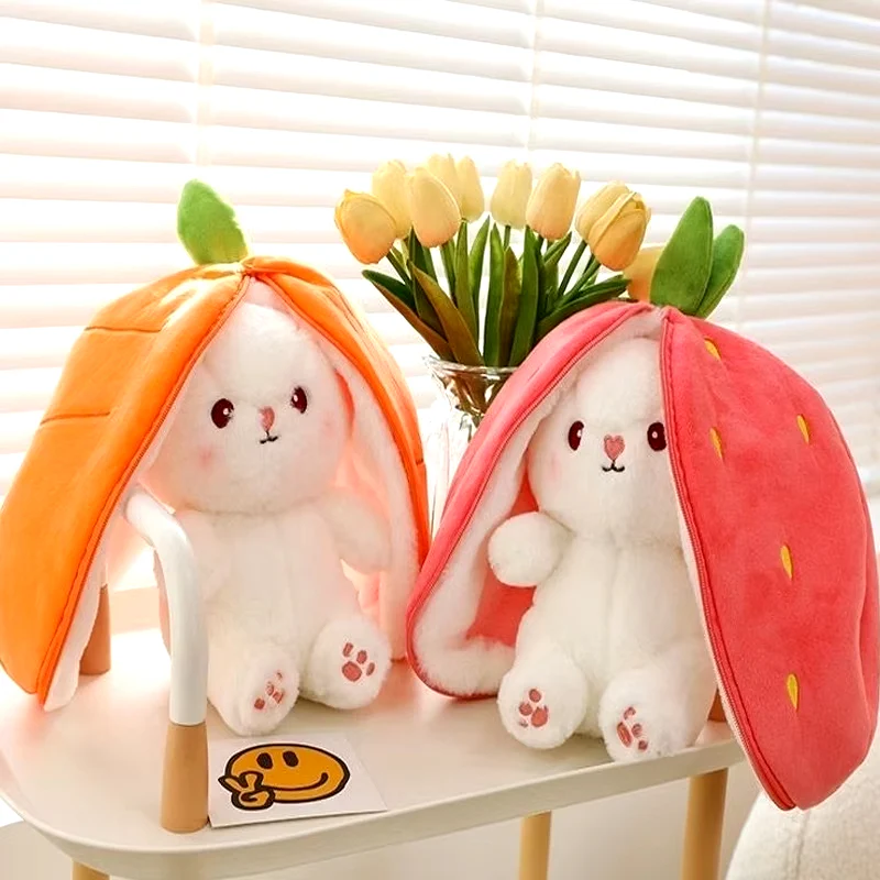 La peluche lapin; tantôt fraise , tantôt carotte reste toujours mignonne et douce lapin aux grandes oreilles tombantes. Offrez-lui un doudou confiant , complice de ses petites histoires et de tous ses secrets.