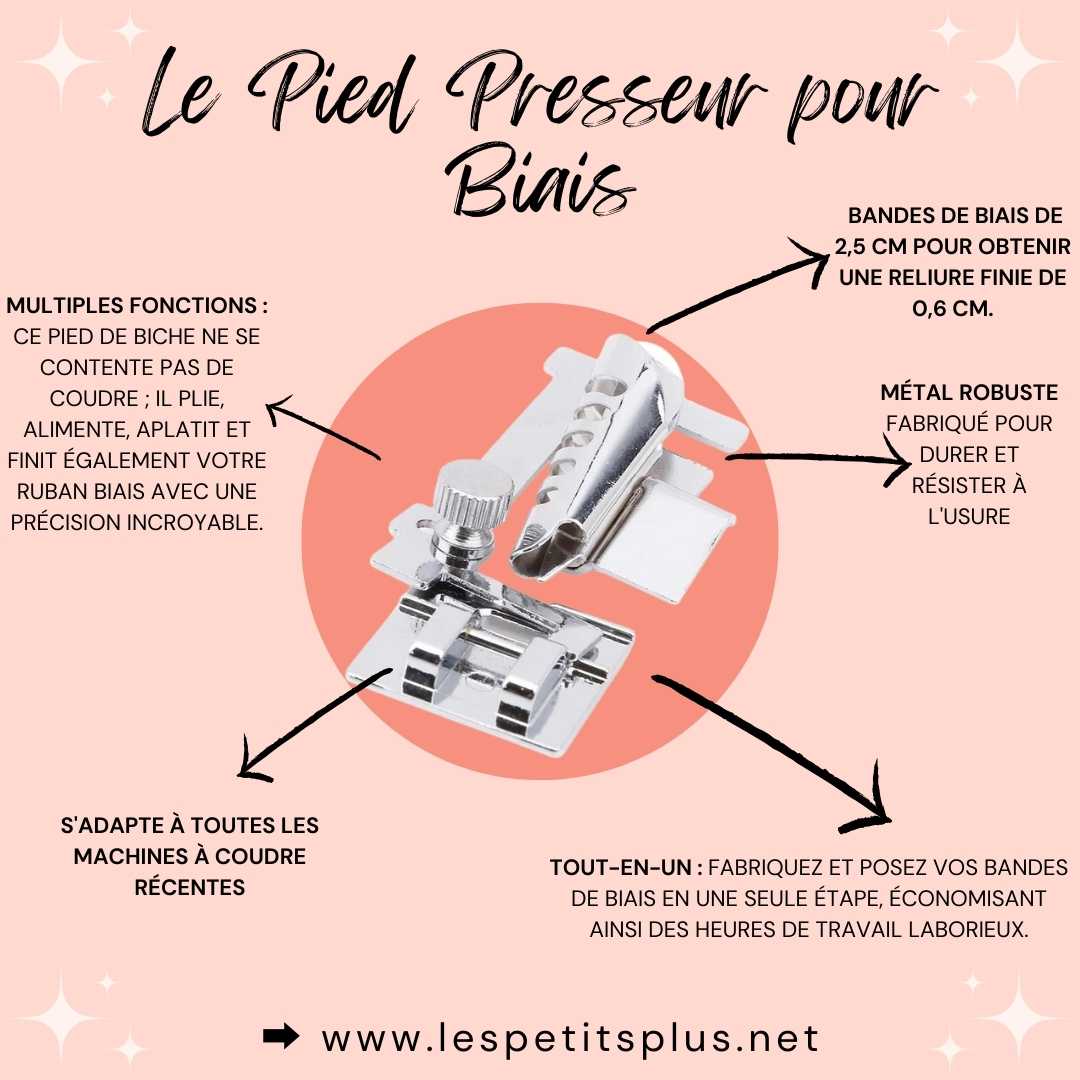 Le Pied de biche pour machine à coudre ultime pour fabriquer et coudre votre biais sur tous vos projets de Couture. Tout ça en une seule étape !