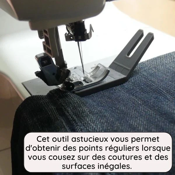 - de travailler sur des coutures épaisses et compenser ainsi la hauteur du pied quand il y a une trop grosse différence de hauteur.