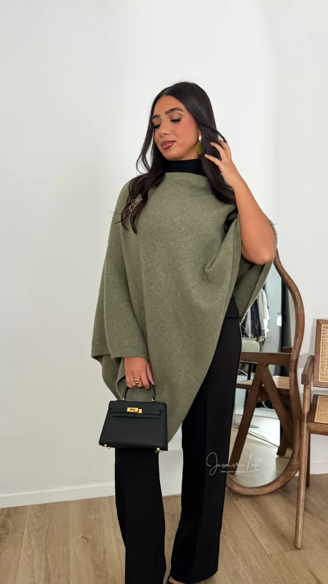 Poncho maille asymétrique Taille unique convient du XS au L . La modèle mesure 1m63