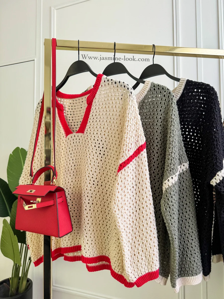 ⚜️pull coupe ample en maille crochet détail Liseret ⚜️Taille unique ample convient du Xs au L . La modèle mesure 1m65