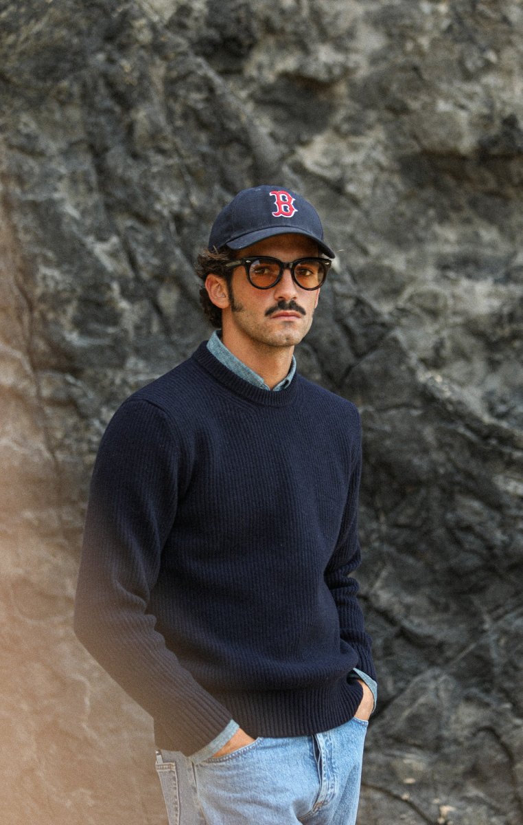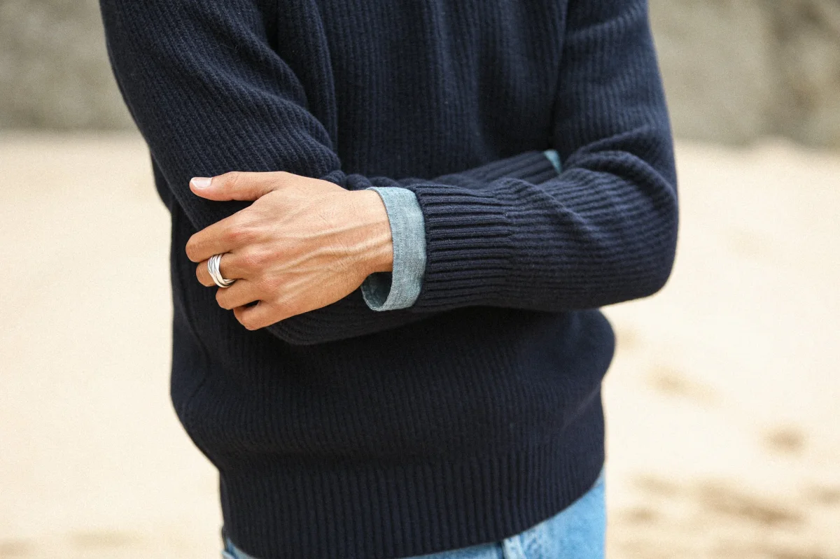 Pull inspiré du vestiaire militaire que nous avons choisi de confectionner dans une très belle laine d’agneau extra-fine d’origine italienne. Nous apprécions particulièrement le point « côtes anglaises » utilisé qui lui confère une allure structurée, dans le respect de son ADN.