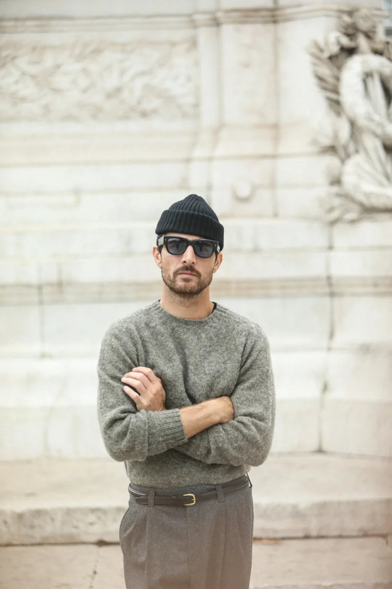 Pull à col rond confectionné en laine Shetland brossée d’origine écossaise. La laine Shetland est connue pour être durable et résistante tout en étant très douce. La construction en manches marteau apporte de la structure à ce joli pull d’hiver et le finissage « shaggy » lui donne un caractère élégant certain.