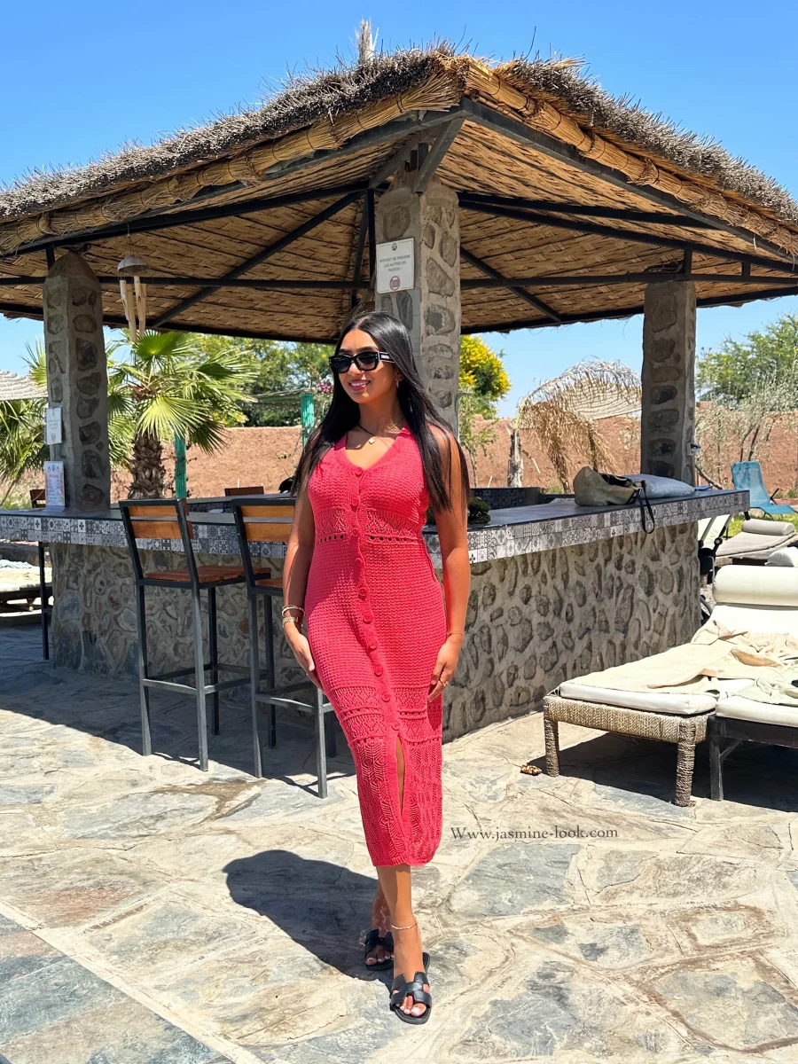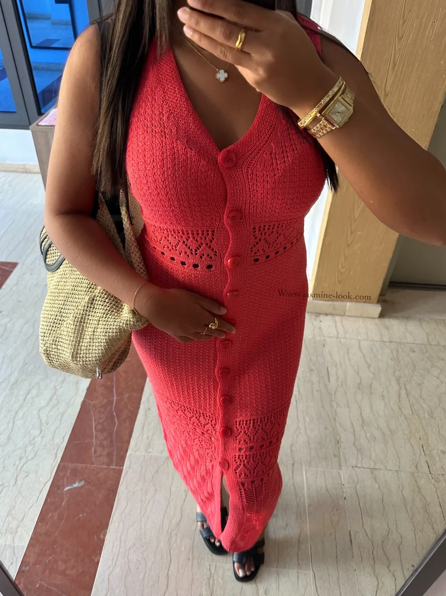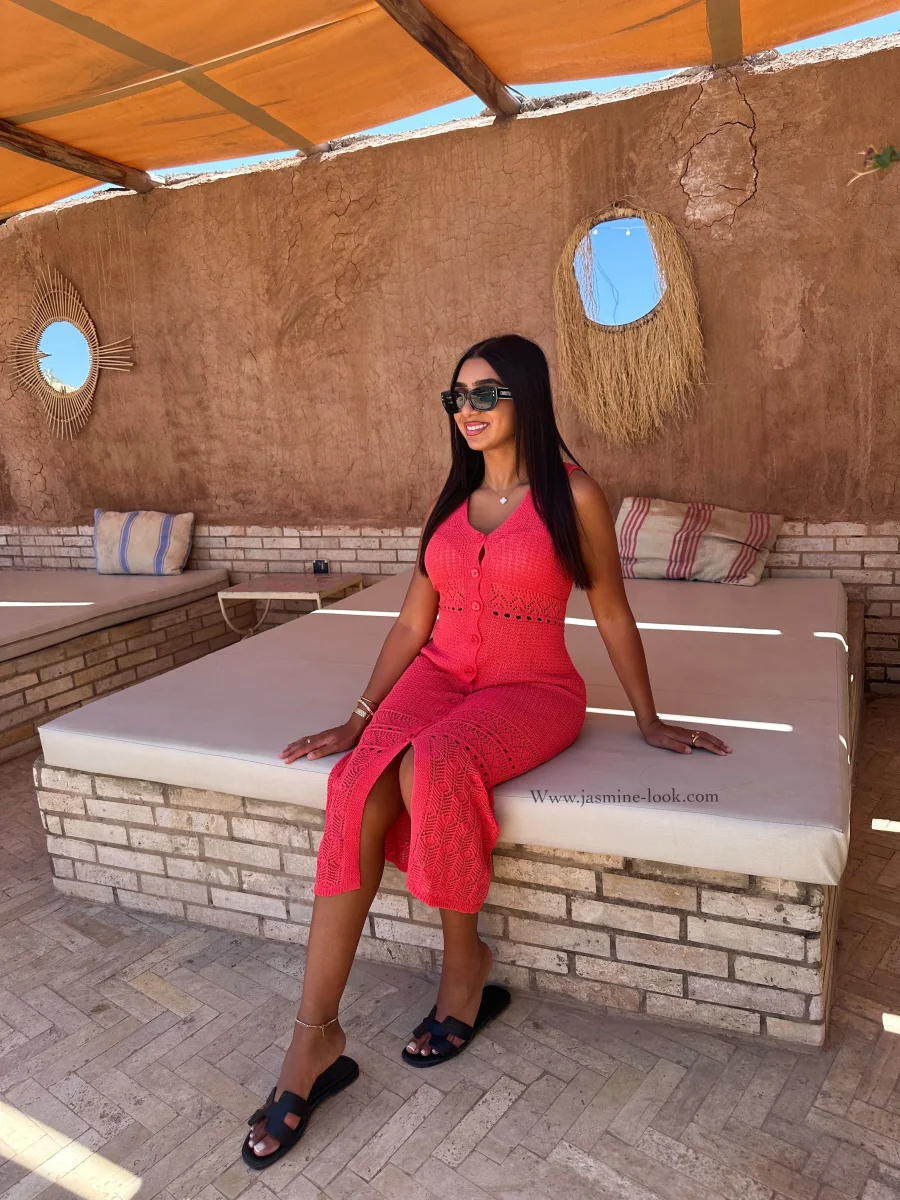 ⚜️Robe crochet couleur corail entièrement boutonné ⚜️Taille correctement La modèle mesure 1m64