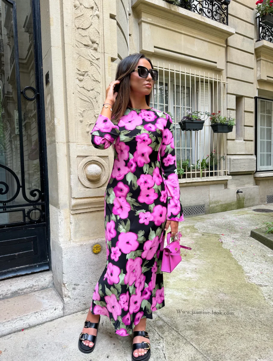 ⚜️Robe longue coupe et manche évasée , taille ajustée