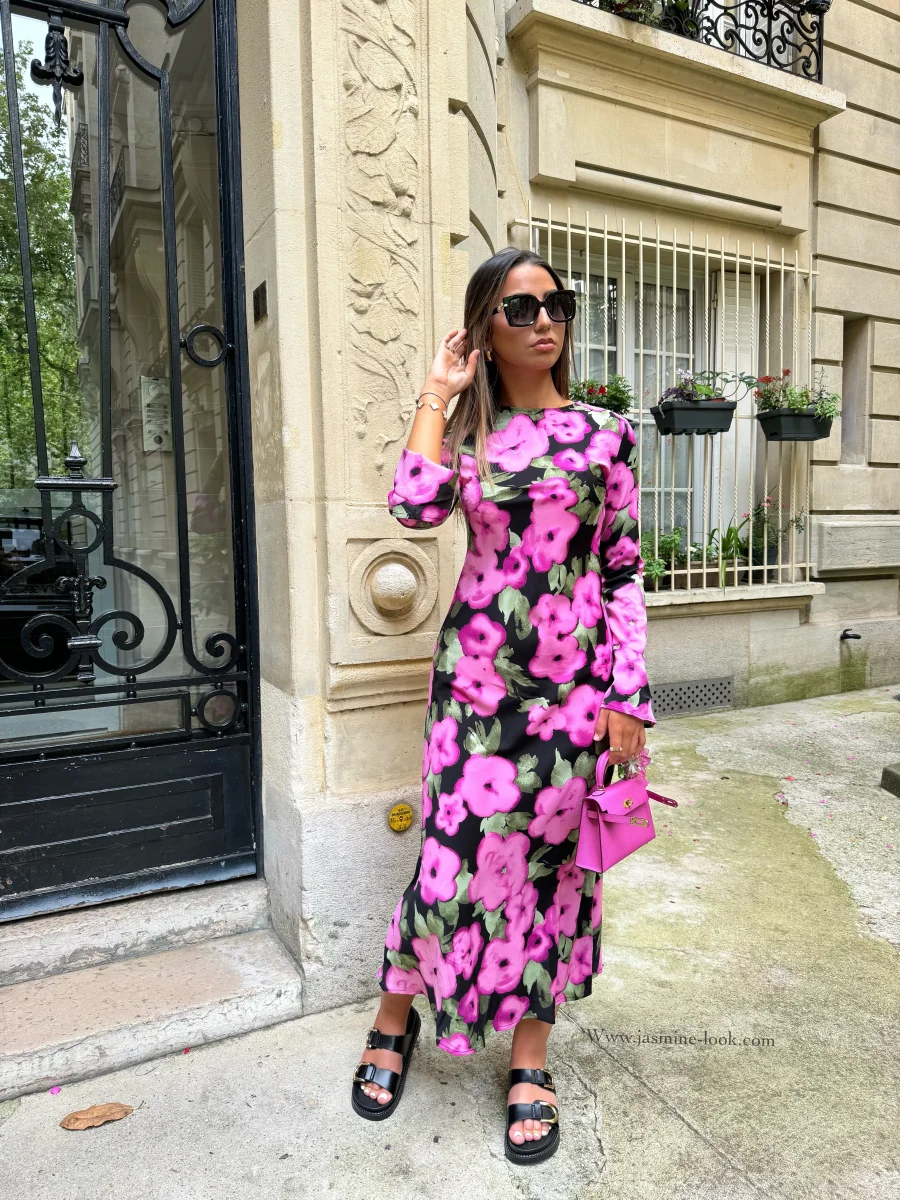 ⚜️Robe longue coupe et manche évasée , taille ajustée ⚜️Taille étroite et juste ,selon votre morphologie nous vous recommandons une taille supérieure à votre taille habituelle La modèle mesure 1m65 et porte la taille S