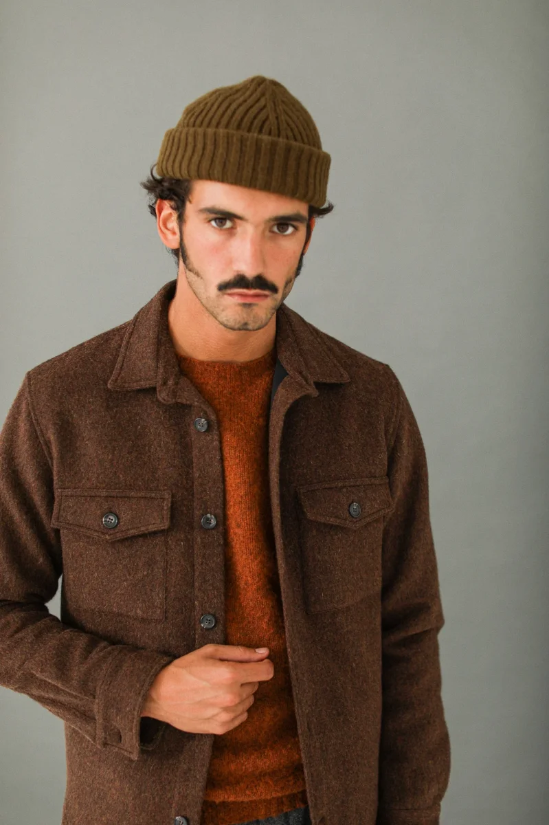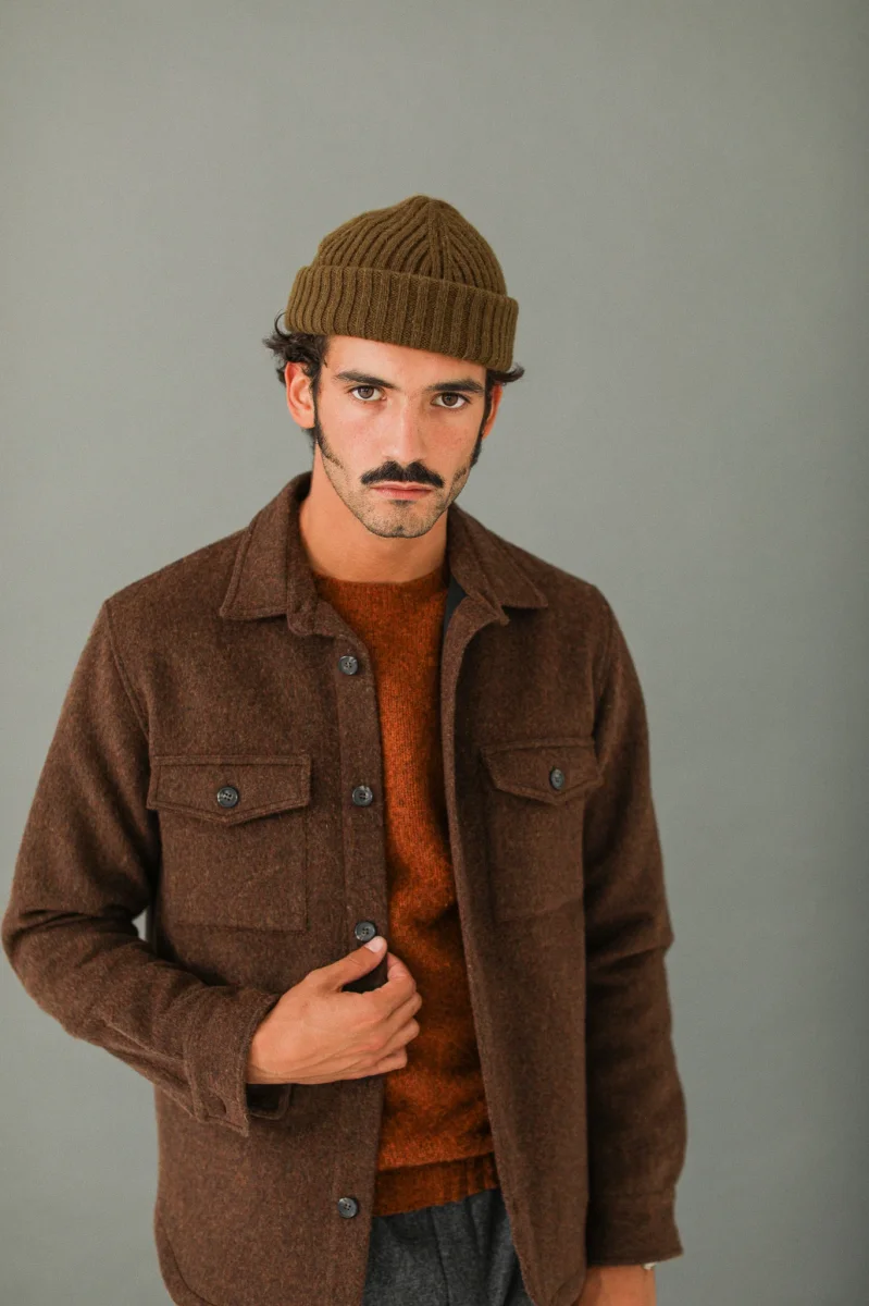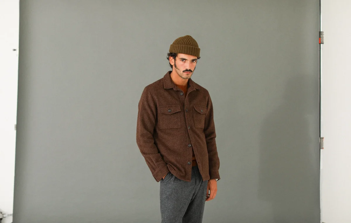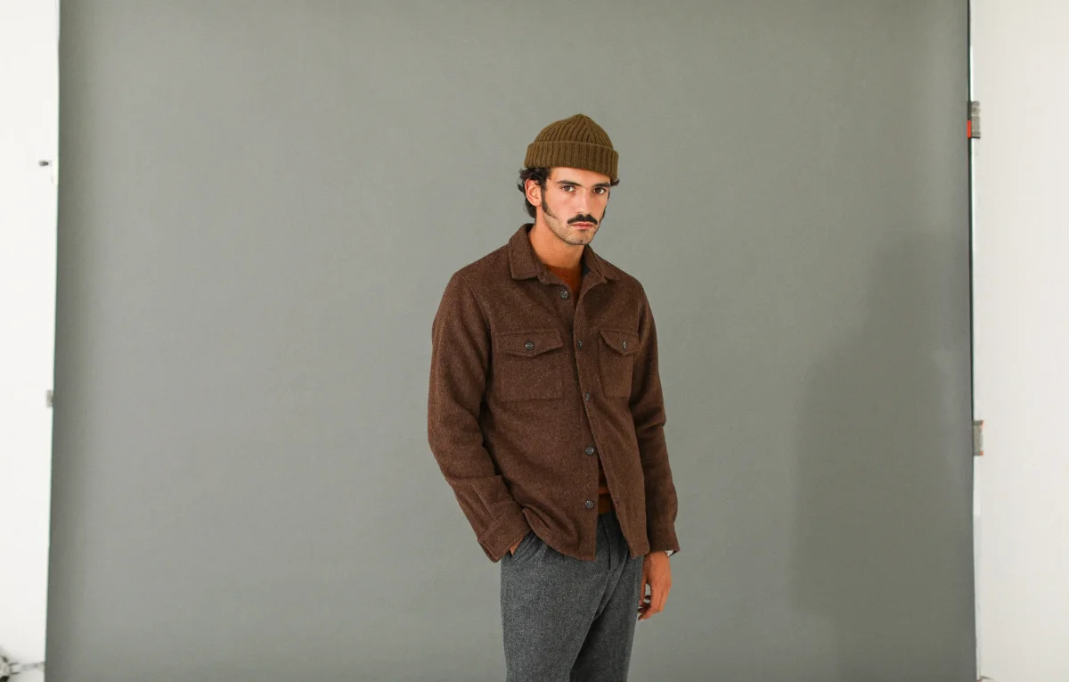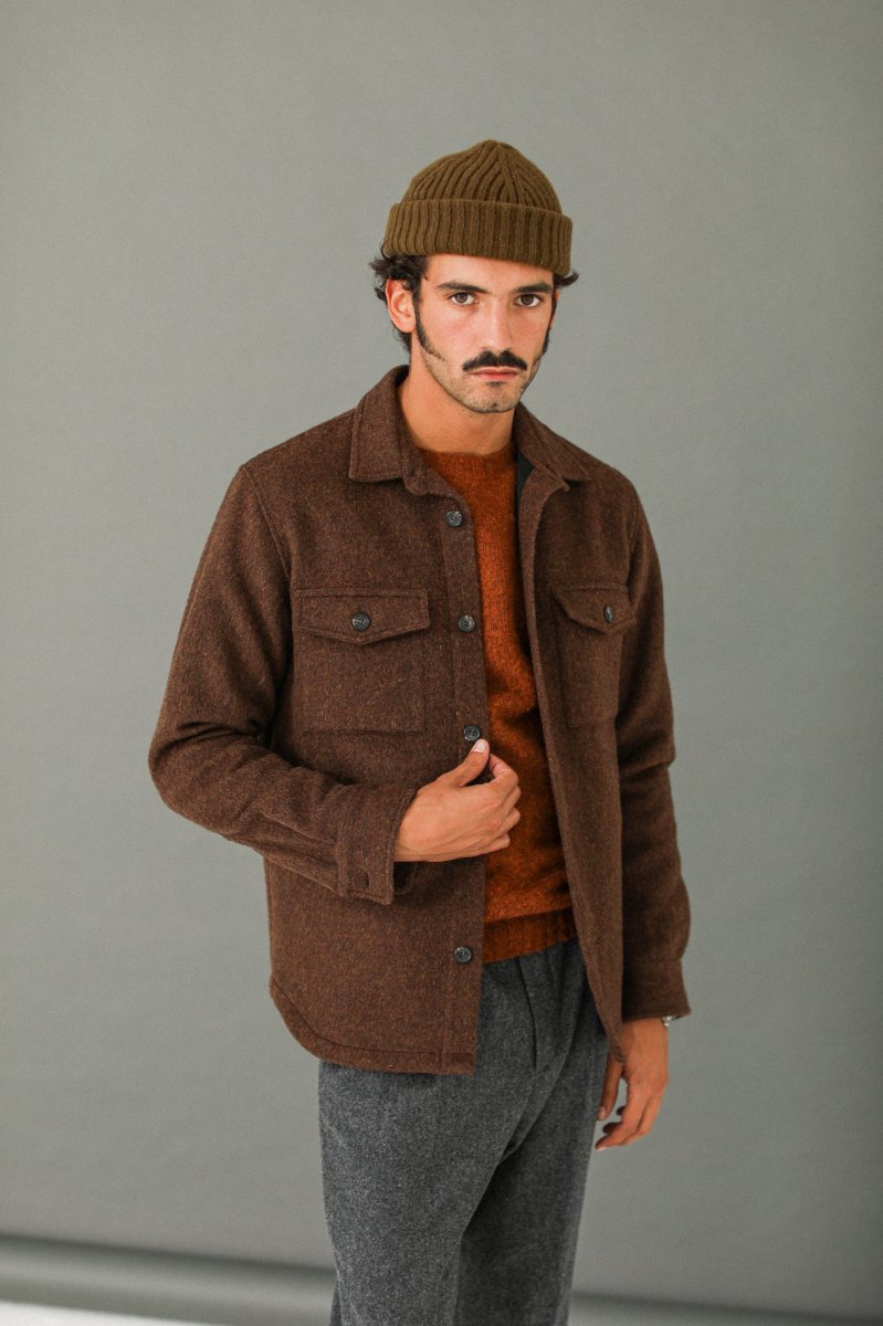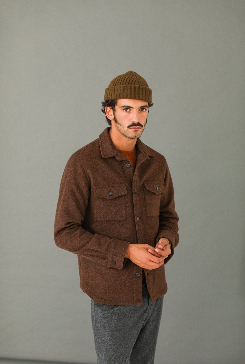 Surchemise d’inspiration militaire confectionnée dans une très belle laine mérinos et doublée d’une toile 100% coton italien. Le finissage de la laine, qui lui confère une si belle main, apporte une grande douceur à cette surchemise que vous pourrez également choisir de porter comme une veste.