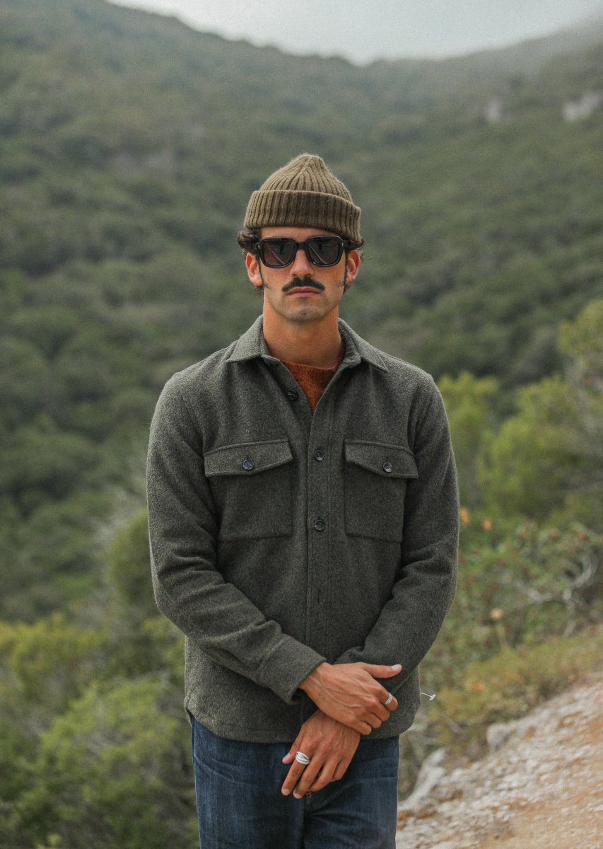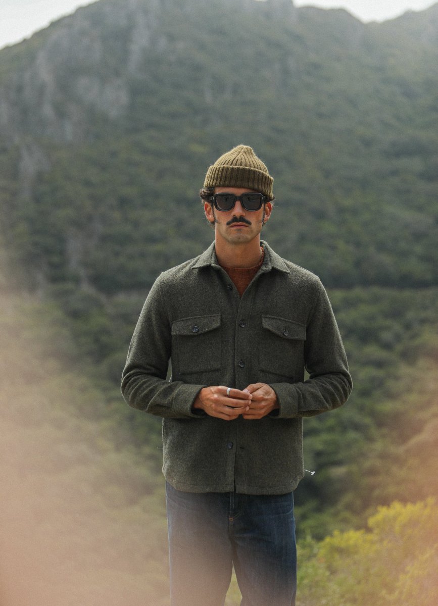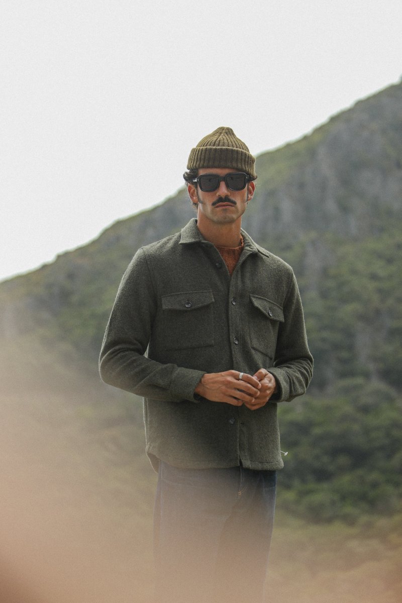Surchemise d’inspiration militaire confectionnée dans une très belle laine mérinos et doublée d’une toile 100% coton italien. Le finissage de la laine, qui lui confère une si belle main, apporte une grande douceur à cette surchemise que vous pourrez également choisir de porter comme une veste.