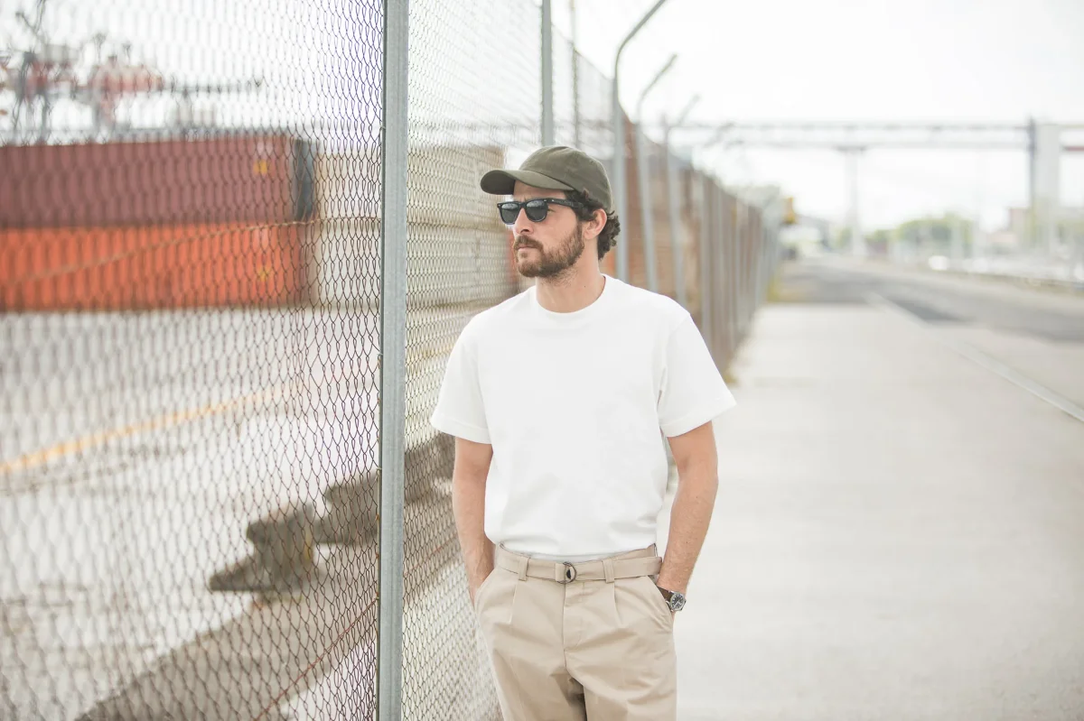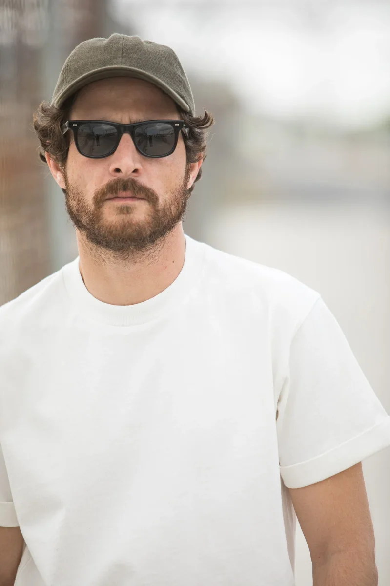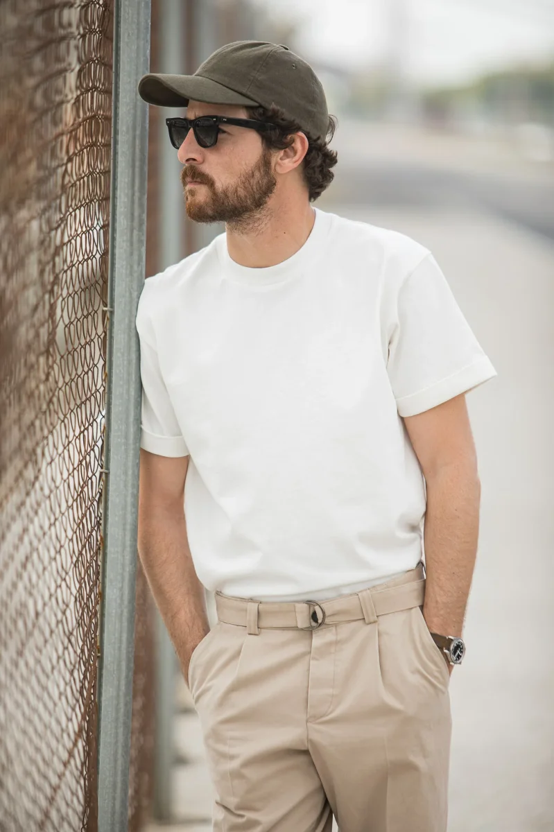 Tee-shirt à manches courtes confectionné dans un jersey de coton épais. Une nouvelle coupe retravaillée inspirée des tee-shirts américains de sport vintage : un bord-côte épais au col, des revers aux manches et une coupe ample. Ce tee-shirt existe aussi en coloris Noir, et Marine.