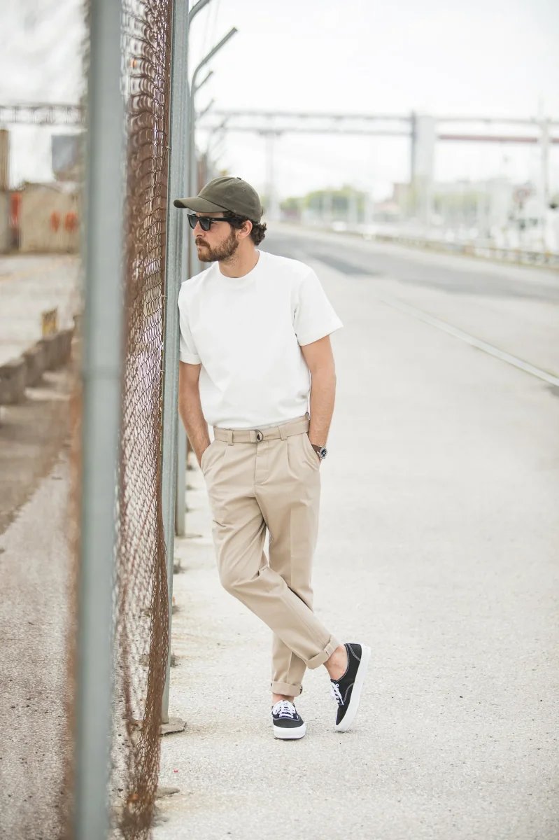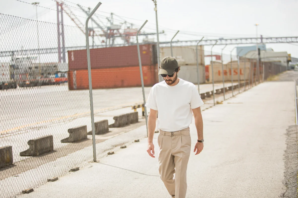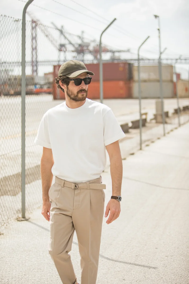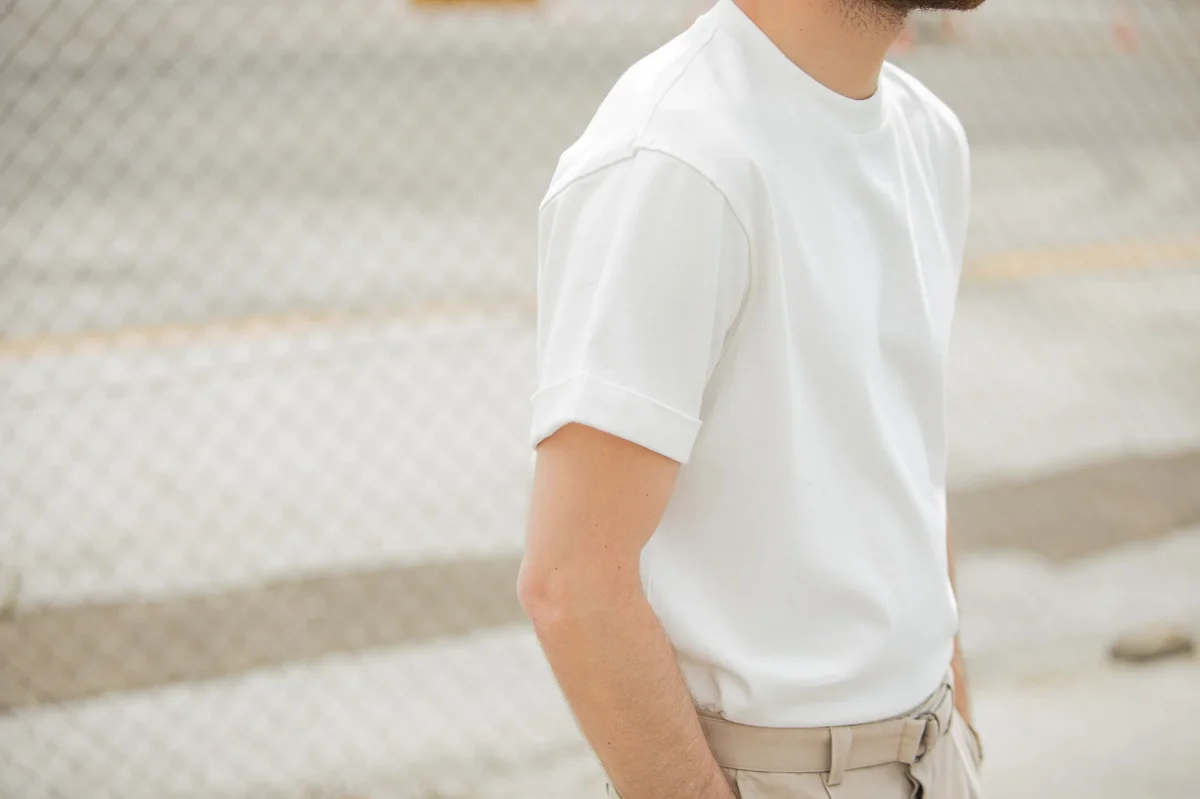 Tee-shirt à manches courtes confectionné dans un jersey de coton épais. Une nouvelle coupe retravaillée inspirée des tee-shirts américains de sport vintage : un bord-côte épais au col, des revers aux manches et une coupe ample. Ce tee-shirt existe aussi en coloris Noir, et Marine.