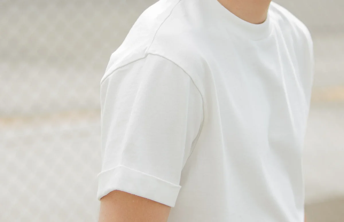 Tee-shirt à manches courtes confectionné dans un jersey de coton épais. Une nouvelle coupe retravaillée inspirée des tee-shirts américains de sport vintage : un bord-côte épais au col, des revers aux manches et une coupe ample.