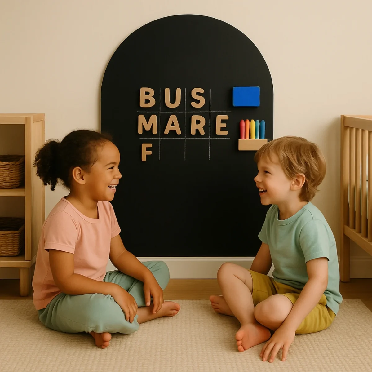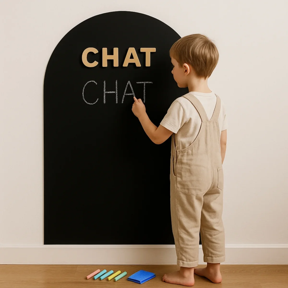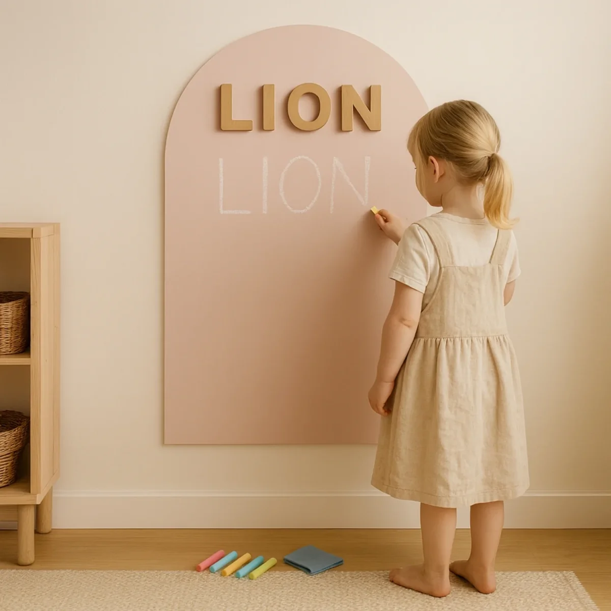 Offrez un coin calme et créatif où votre enfant ose tracer ses premières lettres, retient ses premiers mots et gagne en autonomie — tout en gardant une chambre douce et design.