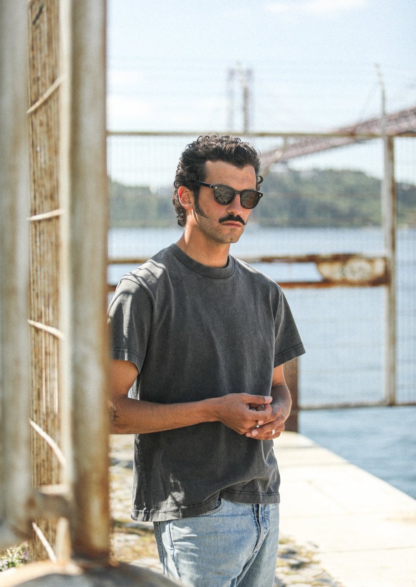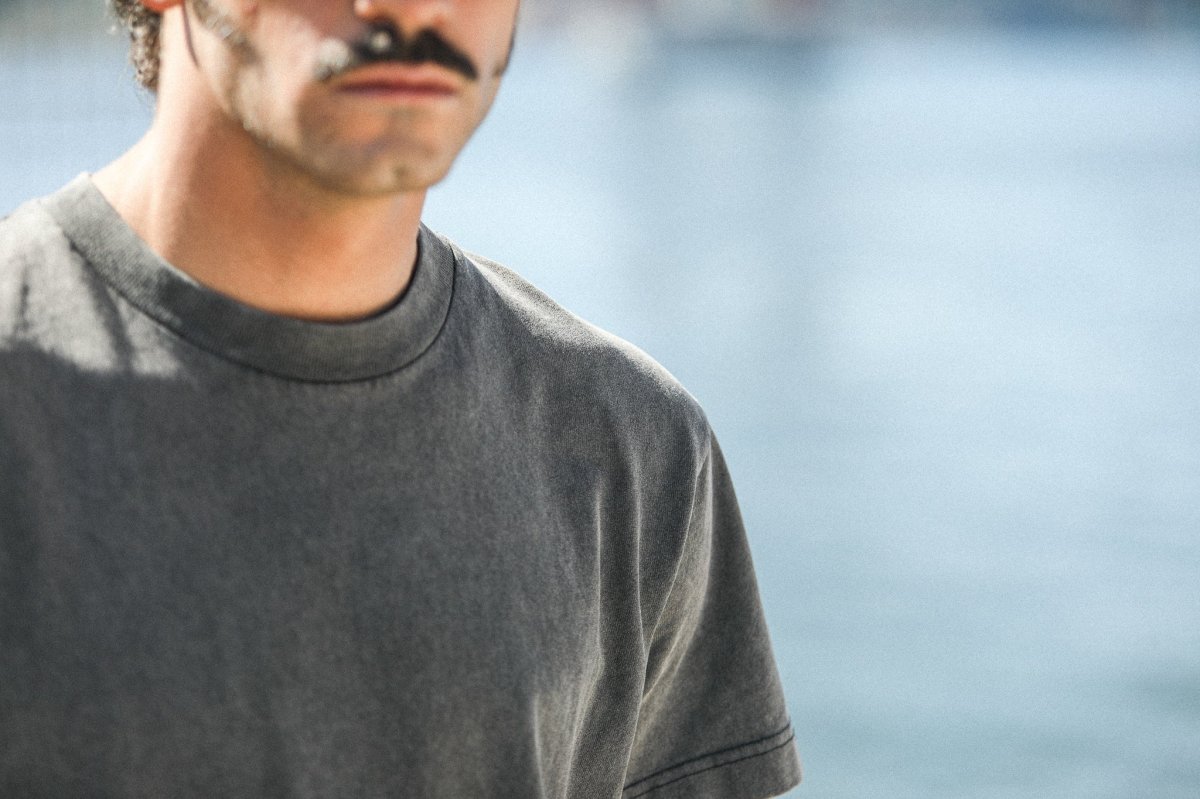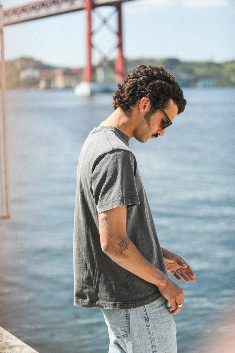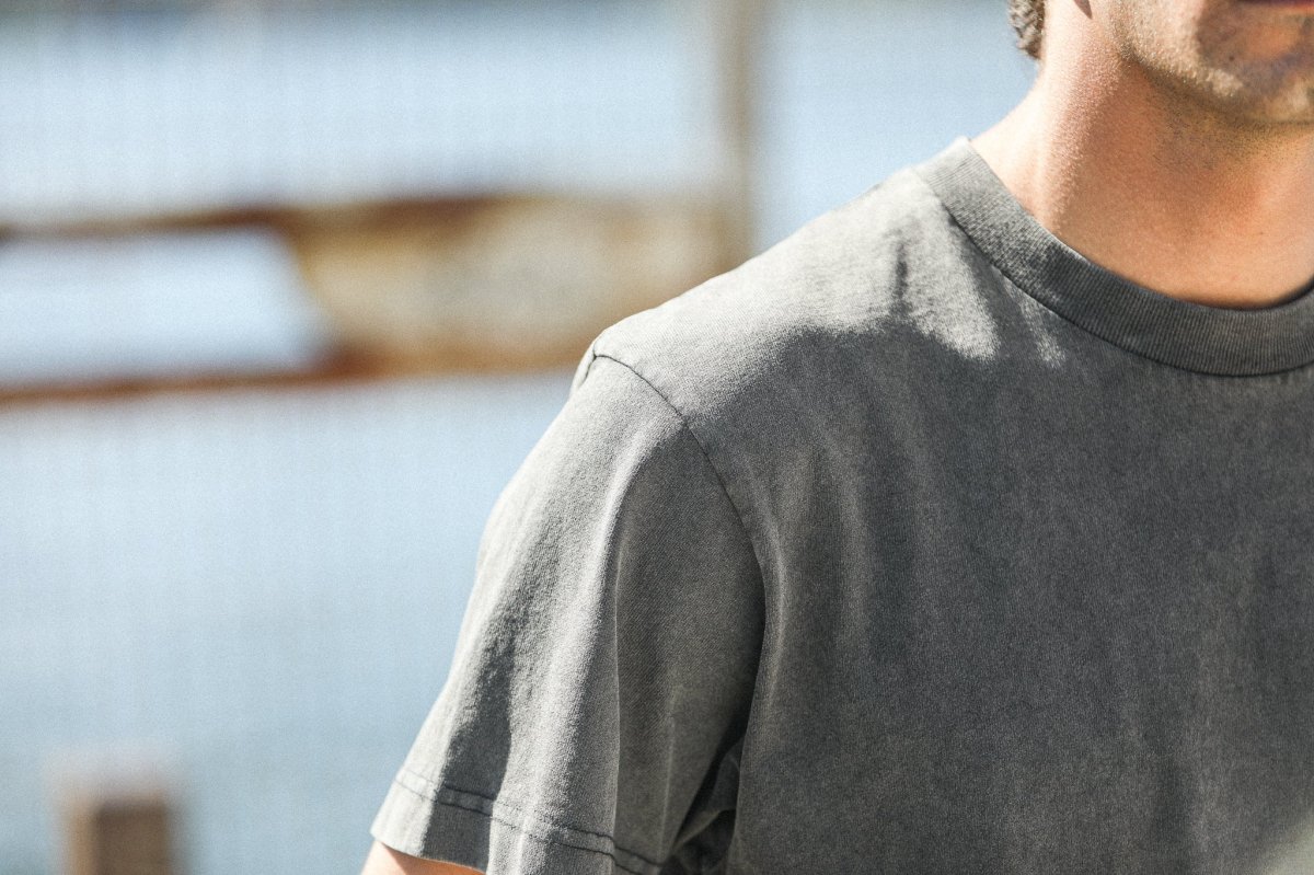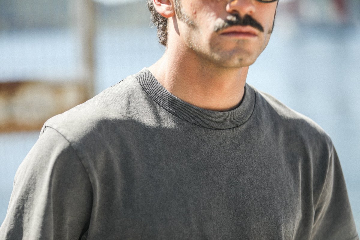Modèle phare de nos collections depuis plusieurs saisons, notre tee-shirt confort confectionné dans un jersey de coton épais est librement inspiré des tee-shirts américains de sport vintage. Une coupe ample, un bord-côte épais au col mais cette nouvelle version est sans revers aux manches. Cette saison, nous lui avons appliqué un délavage de type « acid wash » pour accentuer son aspect vintage et apporter à chaque pièce un caractère unique.