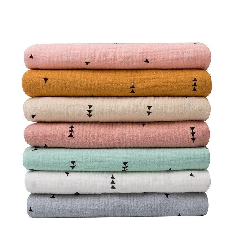 Ces tissus double gaze de coton avec motifs, légers et aériens, sont parfaits pour la création de vêtements, langes, chèches, rideaux, plaids, coussins etc. Grâce à son aspect naturellement froissé ils seront parfaits pour votre dressing d’été.