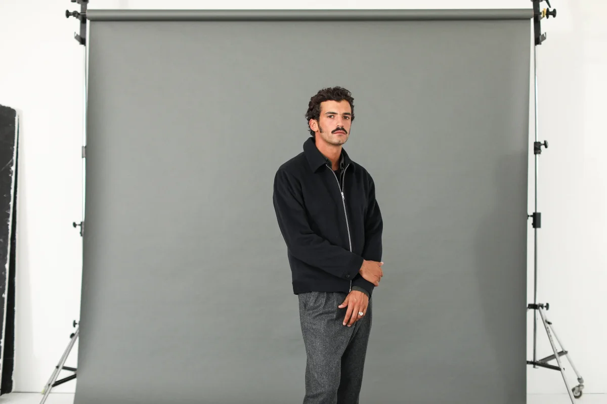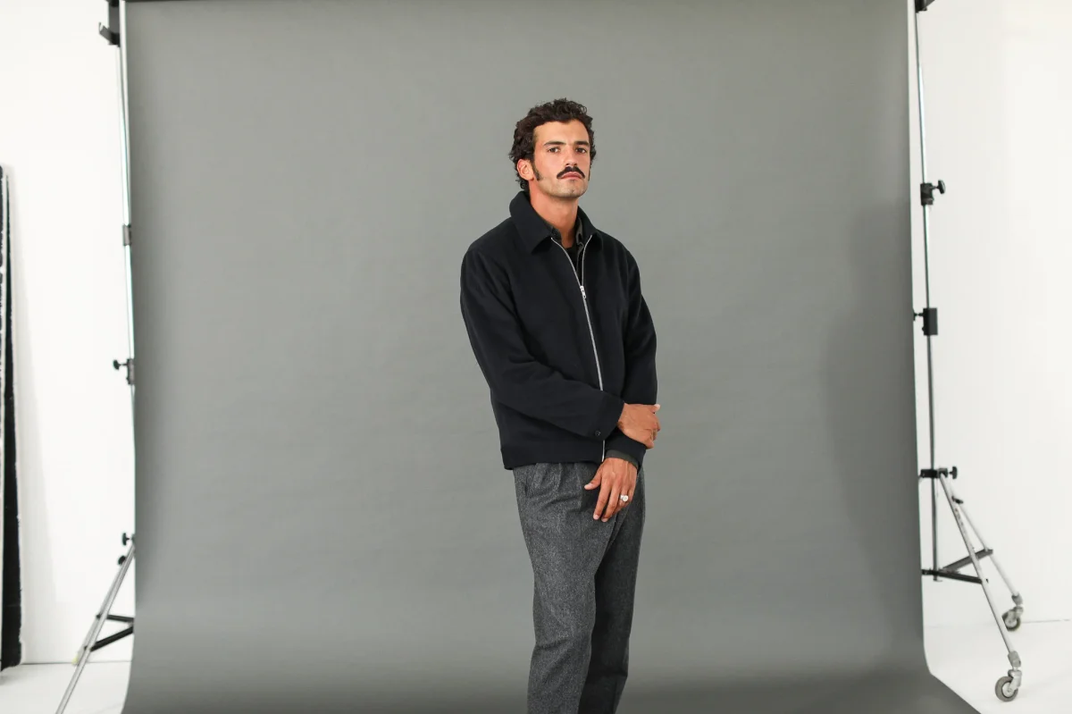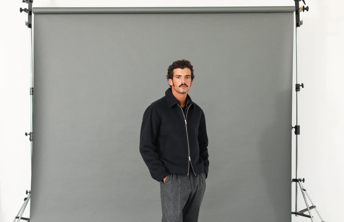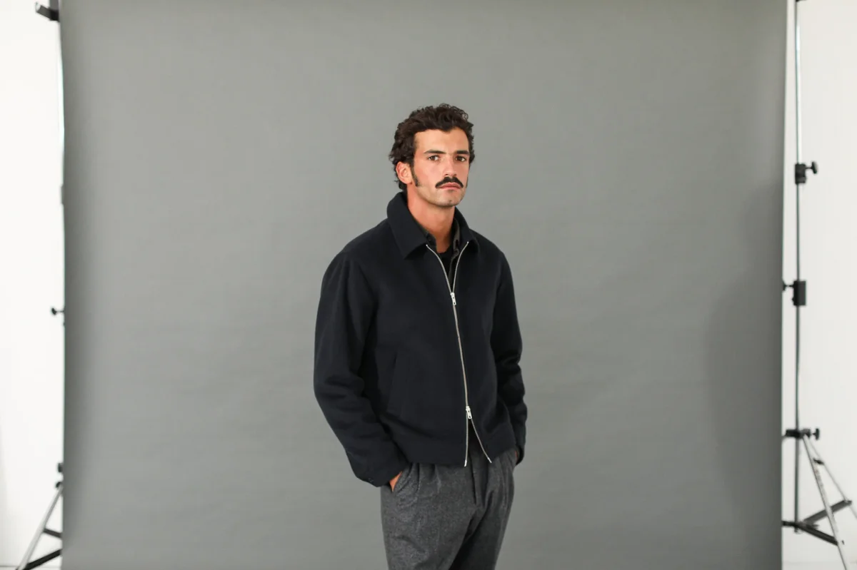 Veste en laine à fermeture Éclair. Le col simple termine une pièce que nous sommes fiers de vous proposer depuis l’hiver dernier : un mélange laine et cachemire d’origine italienne, une double fermeture à glissière sobre et deux poches obliques.