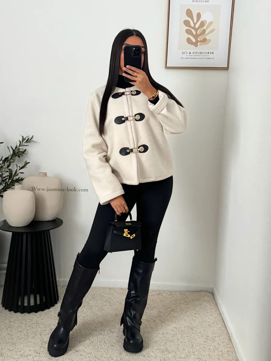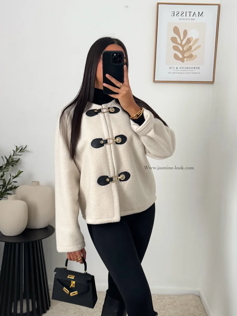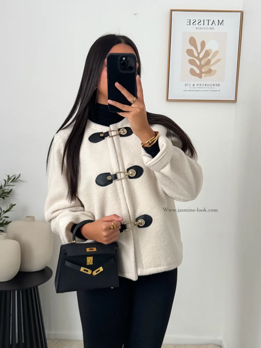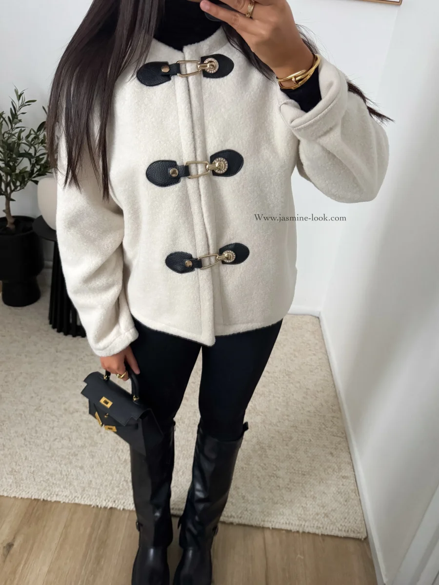 ⚜️Veste courte en moumoute avec attache similicuir ⚜️Taille unique elle convient du Xs au M . La modèle mesure 1 m63